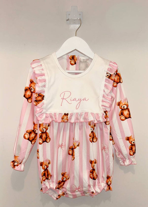 These gorgeous Teddy Bear Rompers are exclusive to Little Bambino's. Turnaroud time is 3-4 Weeks due to them being custom made.
