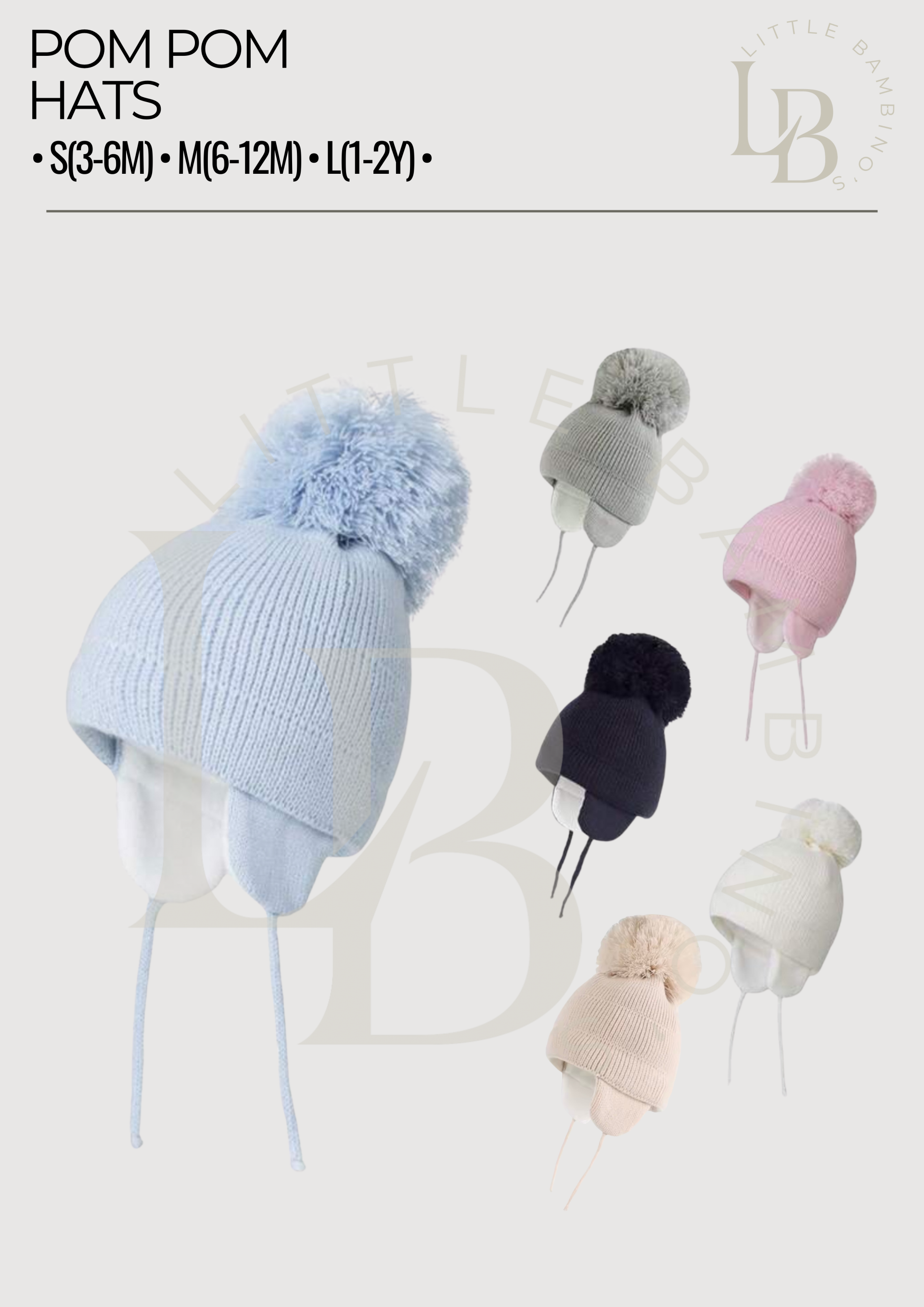 Thick and cosy Pom Pom hats perfect for winter. Can be personalised with Name or Initials.