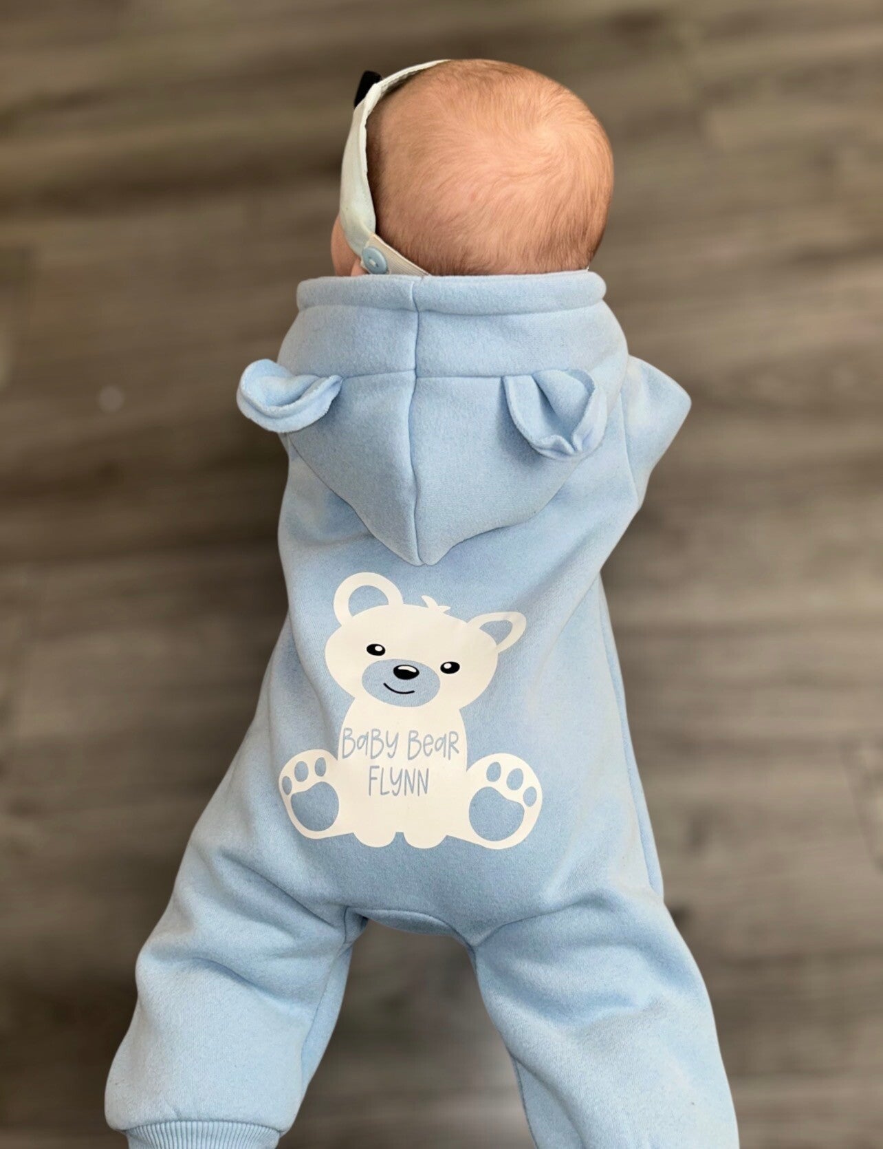 These gorgeous bear onesies are a thick cozy material. Can be personalised with Name/Initials or Name & Baby Bear design on the back.