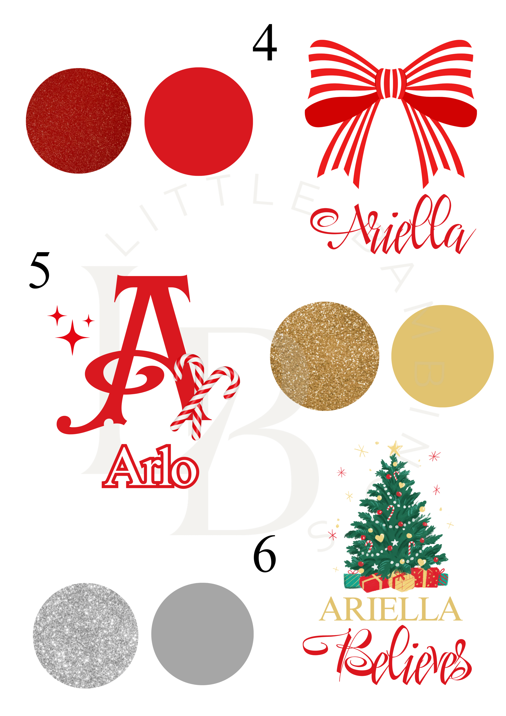 Please specify if you would like plain or glitter colours for your design.