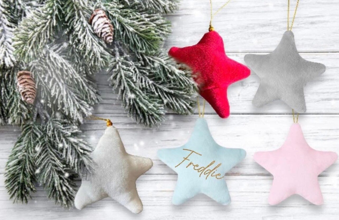 Velvet star tree decorations are the perfect personalised touch for your Christmas tree.