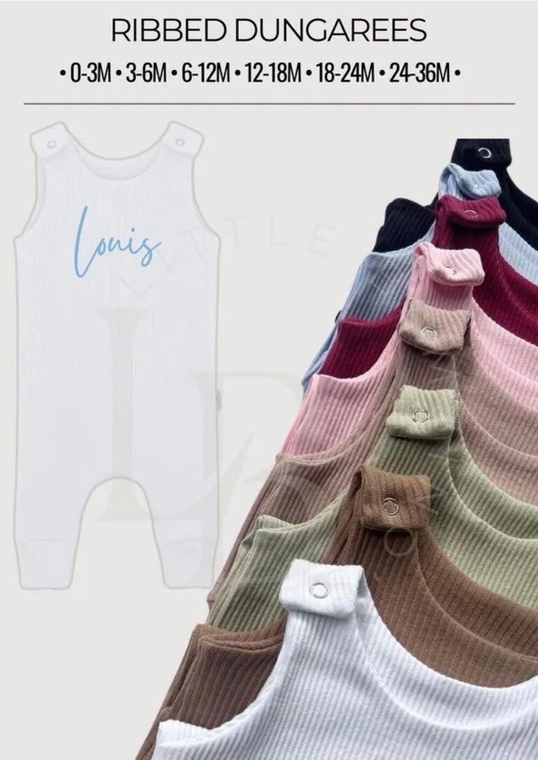 Ribbed Dungarees can now be personalised with name or initials in embroidery!